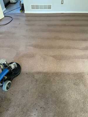 This photo showcases King Organic Clean, where our organic cleaning solutions are actively transforming your space. The carpet featured is a luxurious shag white, while the front portion of the photo highlights our ongoing work on the darker carpet, which is being revitalized. Experience the remarkable difference of King Organic Clean—Extraordinary Clean at its finest.